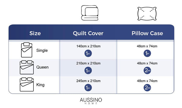Single - 1x Quilt Cover (140 x 210cm) / 1x Pillow Case (48 x 74cm)