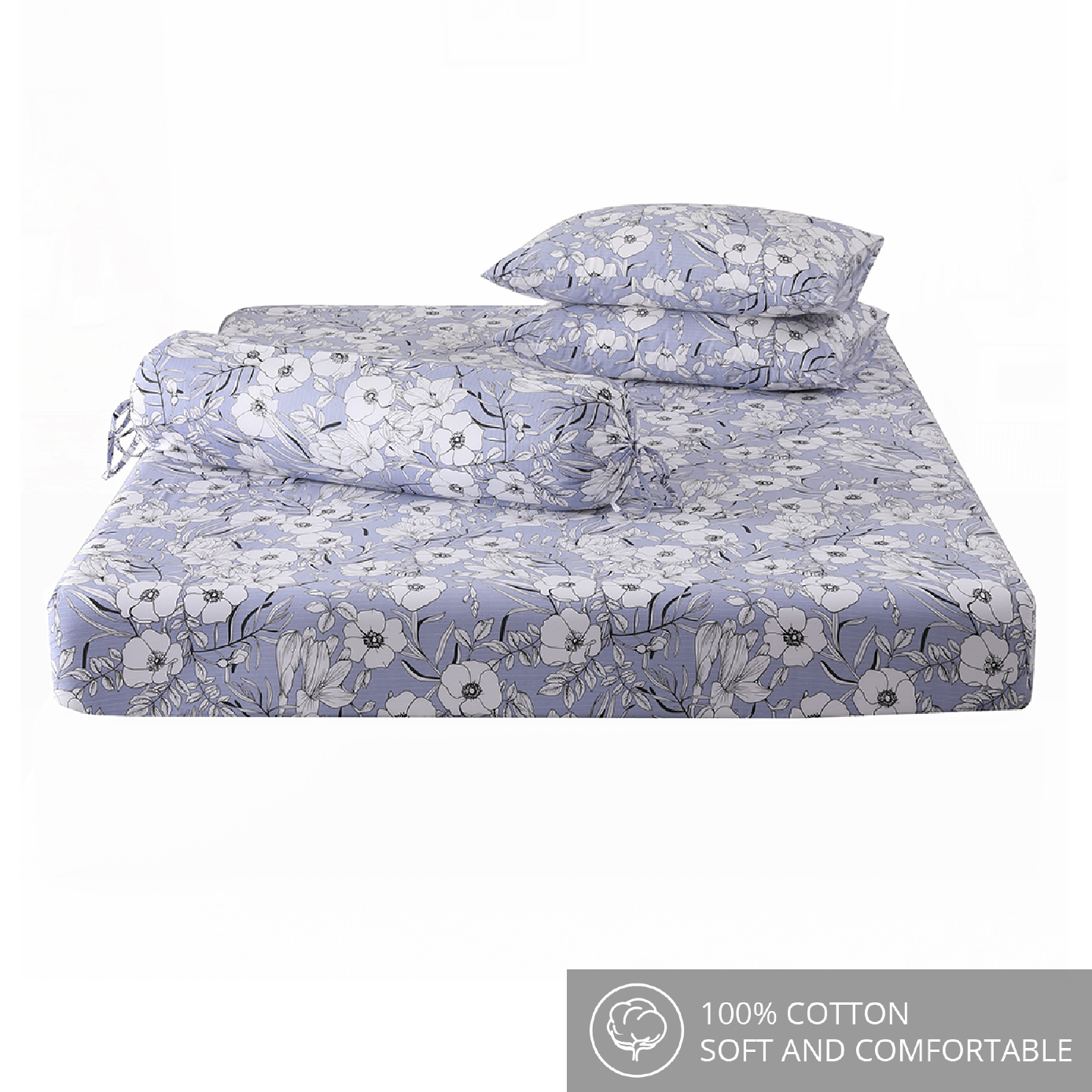 Single & Super Single: 1 Fitted Sheet, 1 Pillow Case, 1 Bolster Case