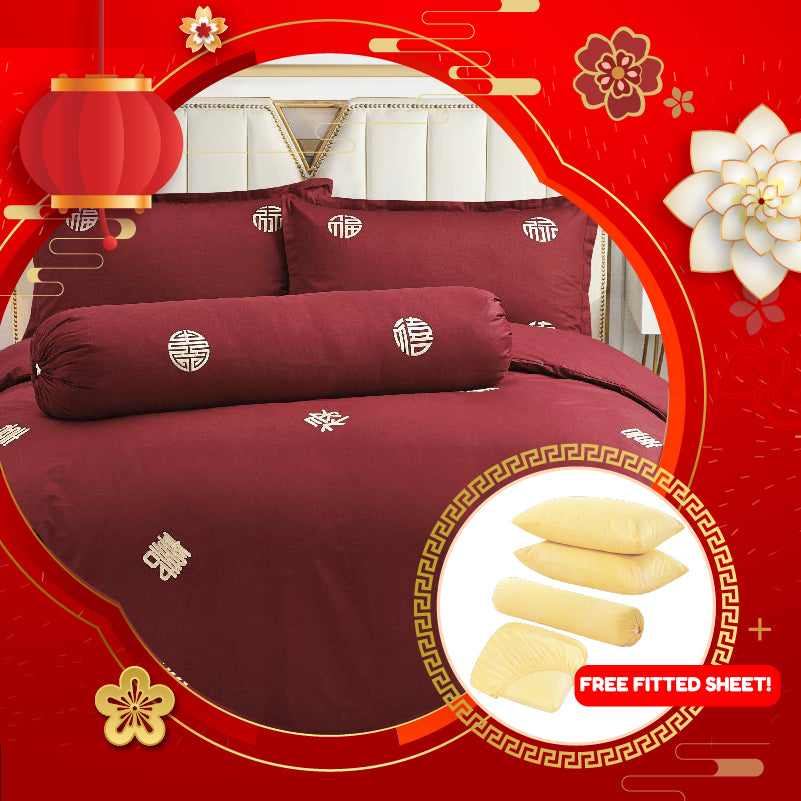 Contempo Joyluck Embroidery 100% Cotton Quilt Cover Set - Aussino Malaysia